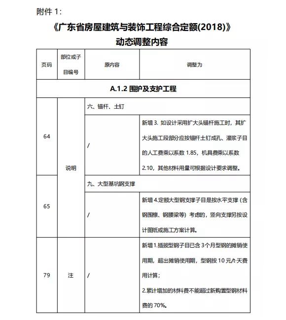 1:《廣東省房屋建筑與裝飾工程綜合定額(2018)》動態調整內容及子目;