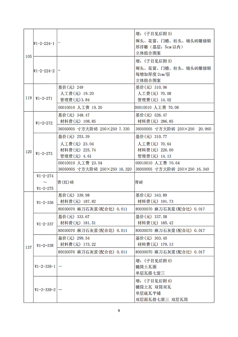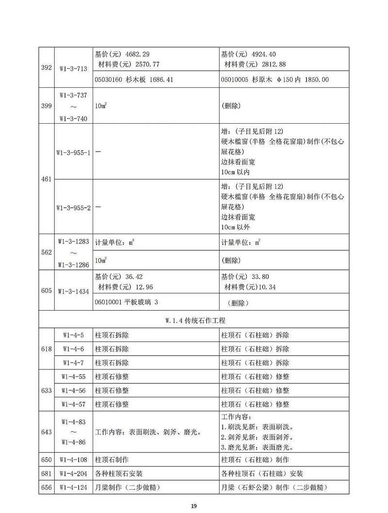附件:《廣東省傳統建筑保護修復工程綜合定額(試行) 2018》動態調整內容