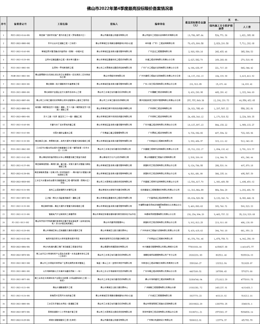 附件:佛山市2022年第4季度最高投標(biāo)限價(jià)備案情況表