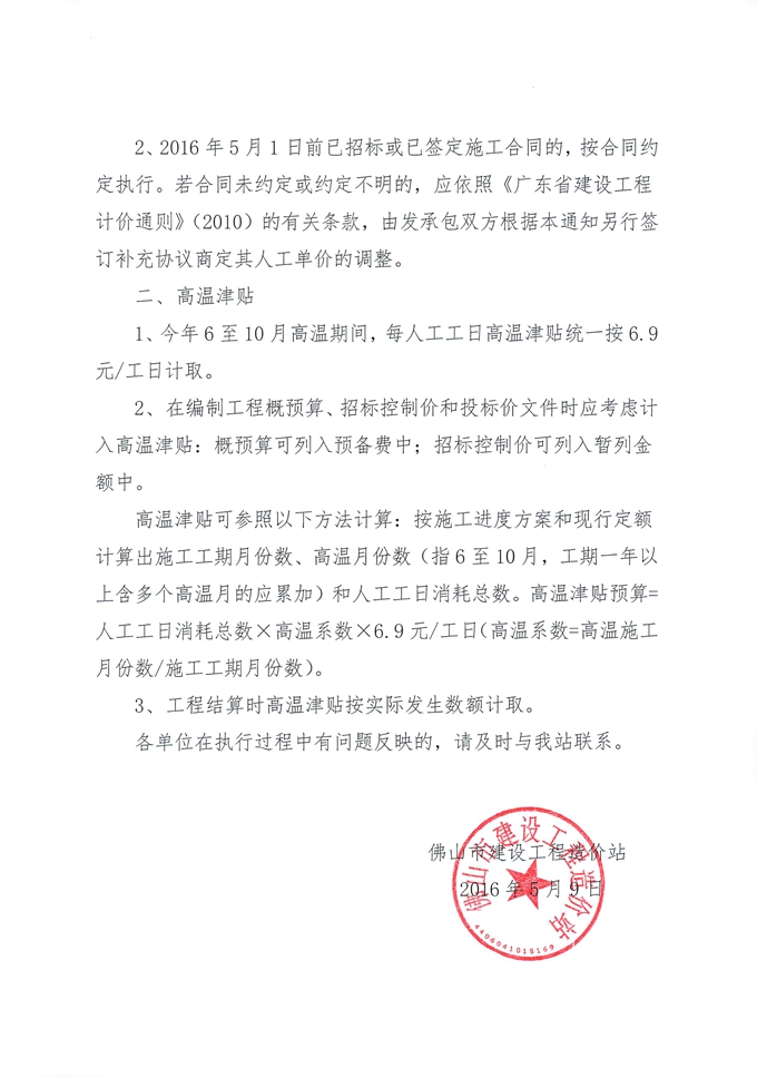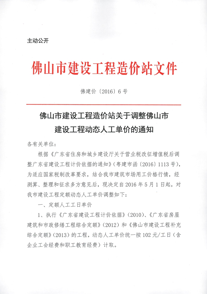佛山市建設工程造價站關于調整佛山市建設工程動態(tài)人工單價的通知