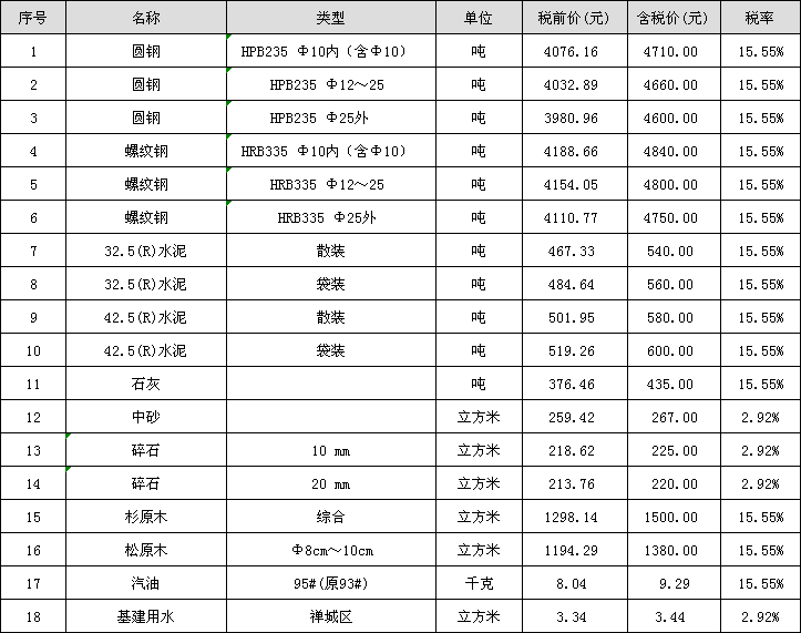 周轉(zhuǎn)材料租賃價(jià)格信息