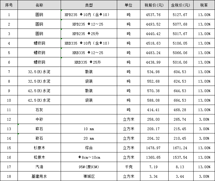 周轉(zhuǎn)材料租賃價(jià)格信息