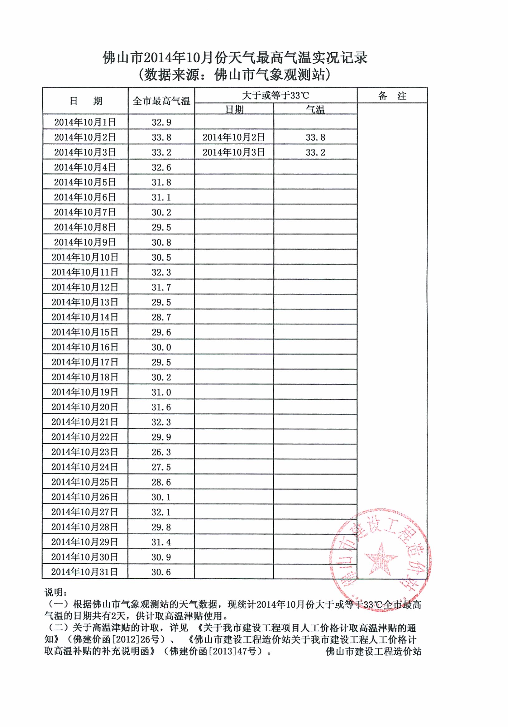 佛山市建設工程造價站關于我市建設工程人工價格計取高溫補貼的補充說明函》(佛建價函[2013]47號)