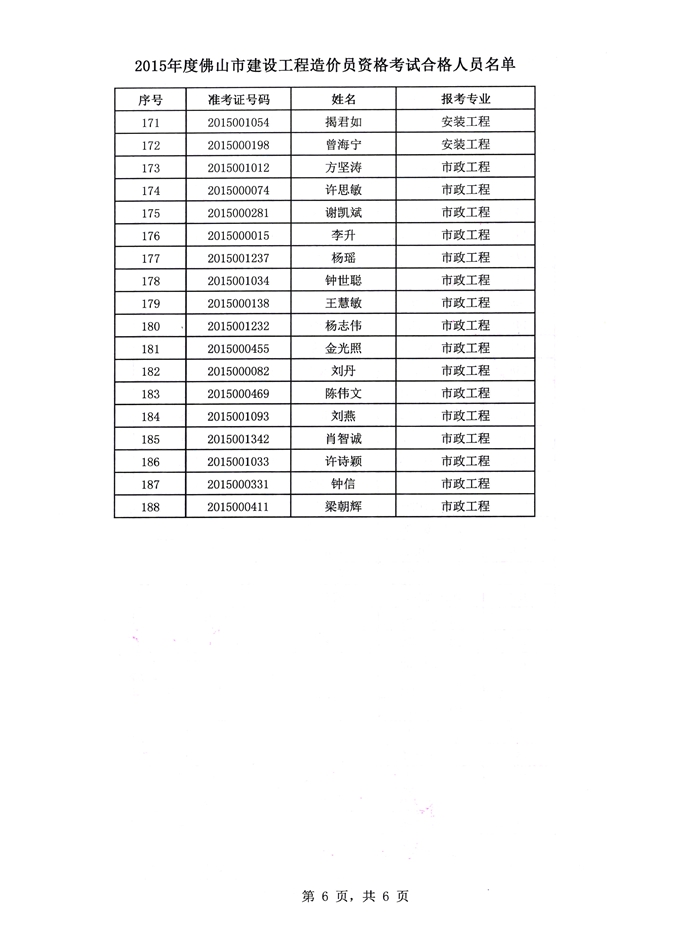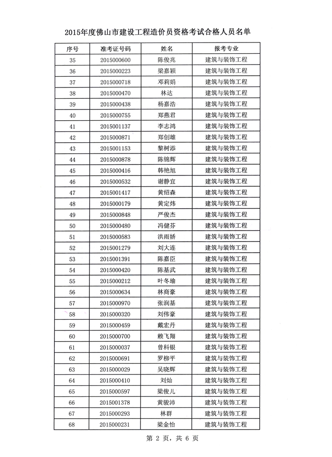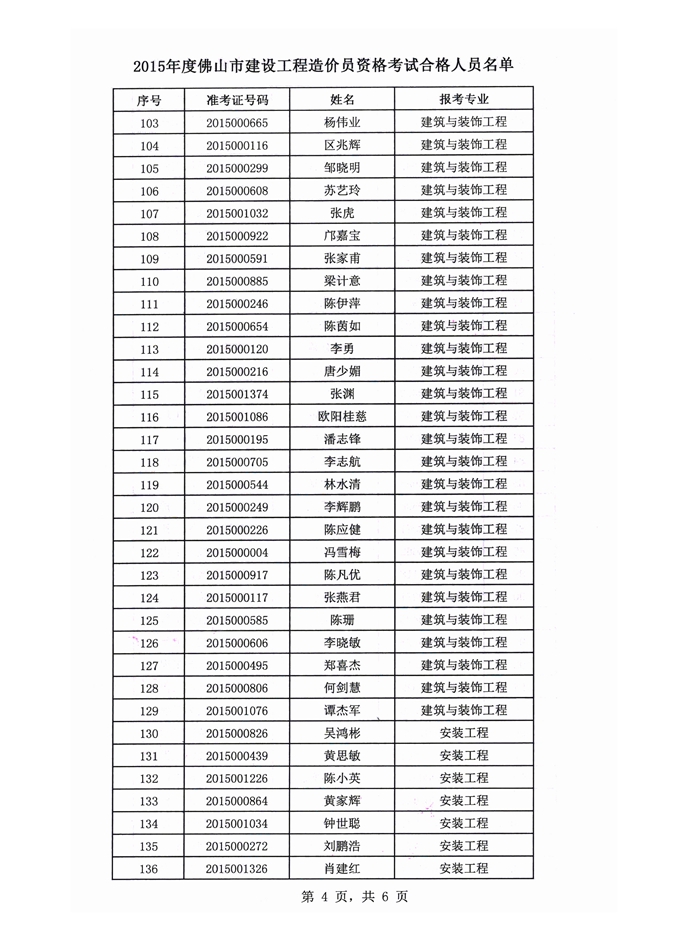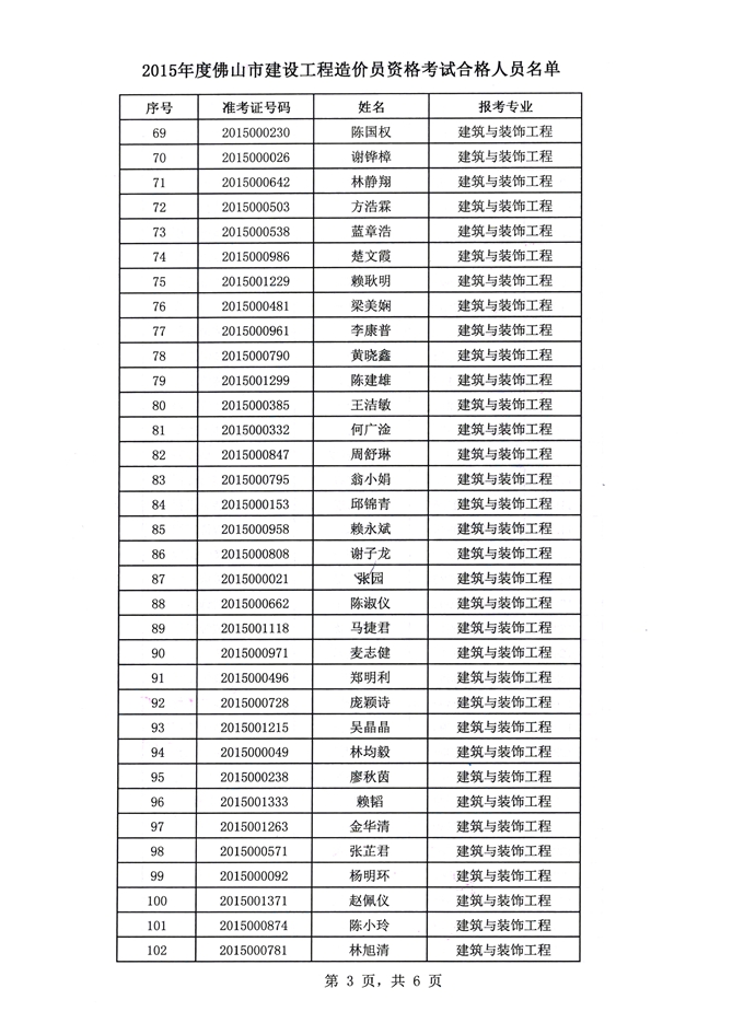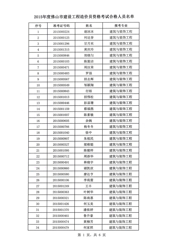 現將2015年全國建設工程造價員資格證書考試佛山考場合格人員名單公布如下,待其證制作完畢,屆時通知前往領取。