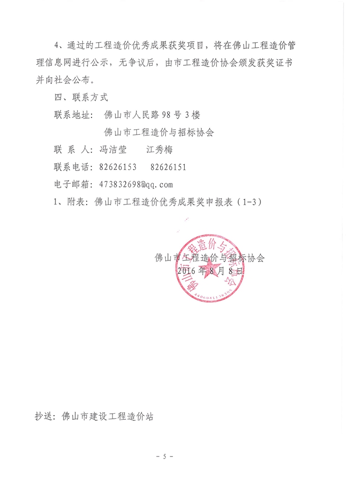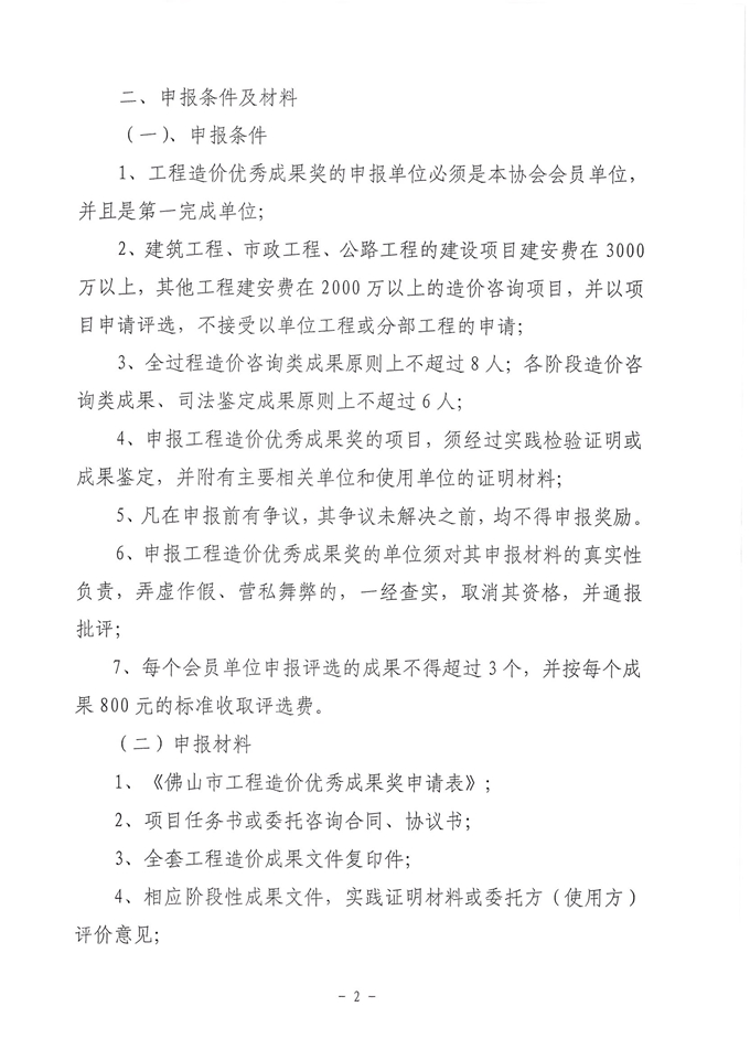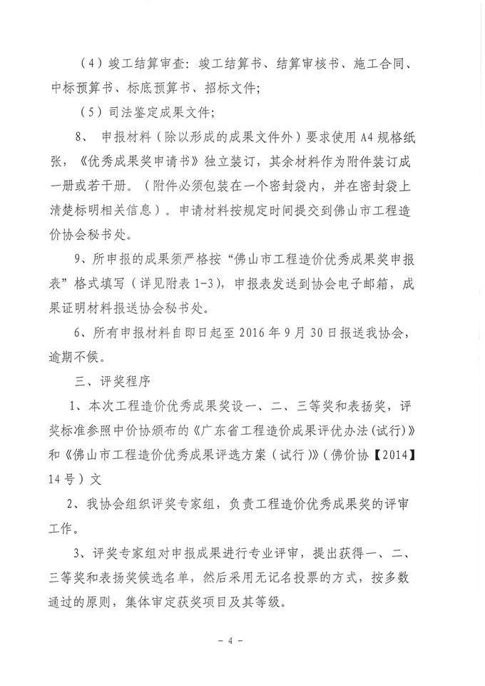 關于開展佛山市第三屆工程造價優秀成果評獎活動的通知
