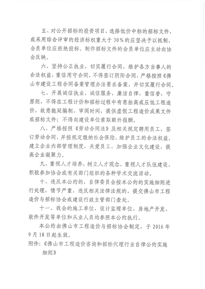 附件:佛山市工程造價咨詢和招標代理行業(yè)自律公約實施細則