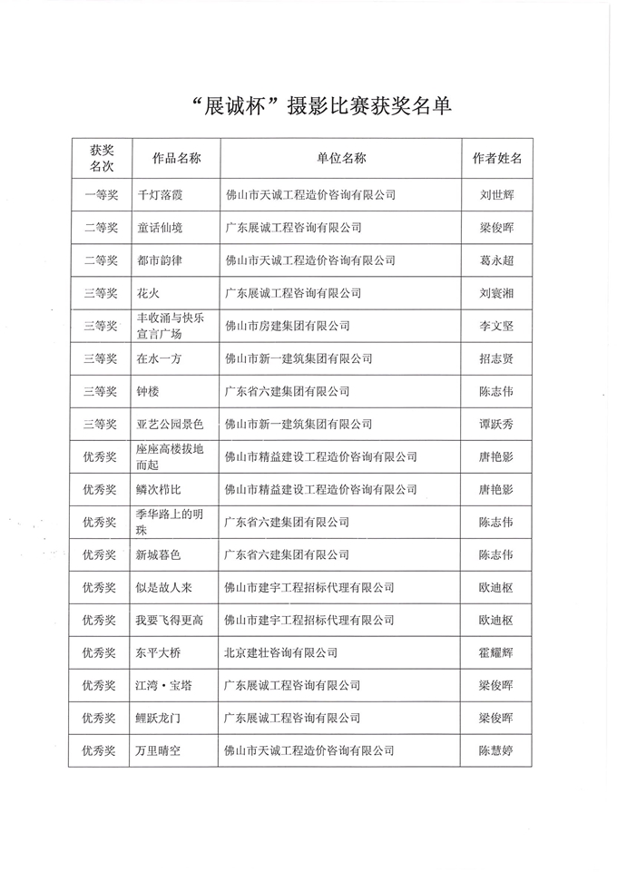 關于公布“展誠杯”-佛山城市風貌攝影比賽獲獎名單通知