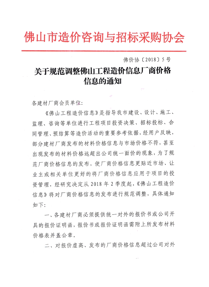關于規(guī)范調整佛山工程造價信息廠商價格信息的通知