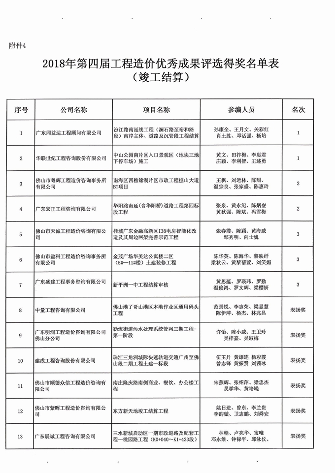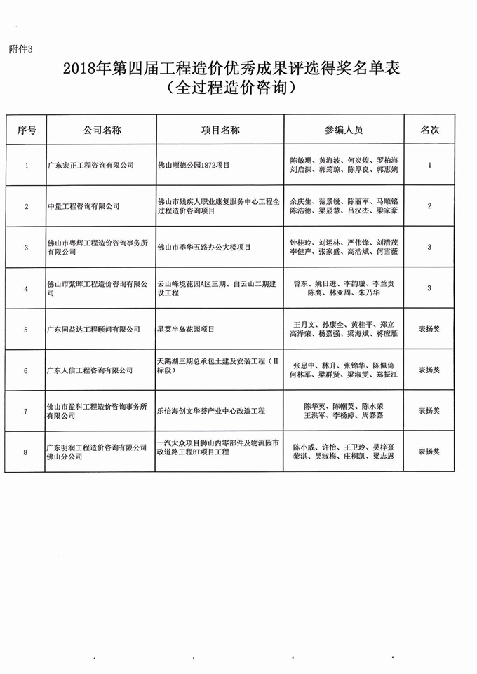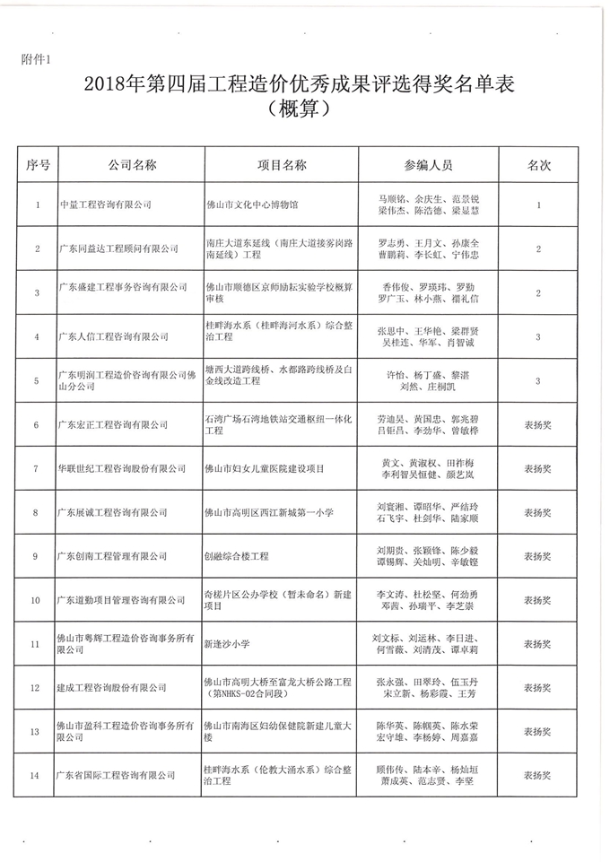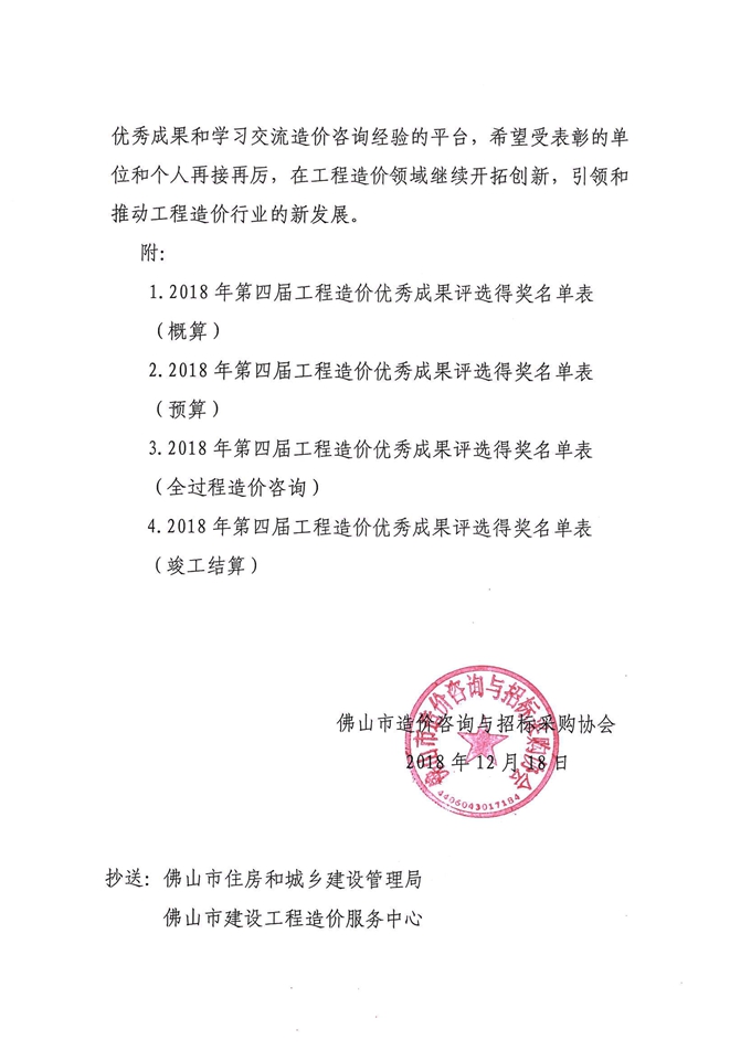 佛山市造價(jià)咨詢與招標(biāo)采購(gòu)協(xié)會(huì)第四屆工程造價(jià)優(yōu)秀成果評(píng)選活動(dòng)獲獎(jiǎng)名單通知