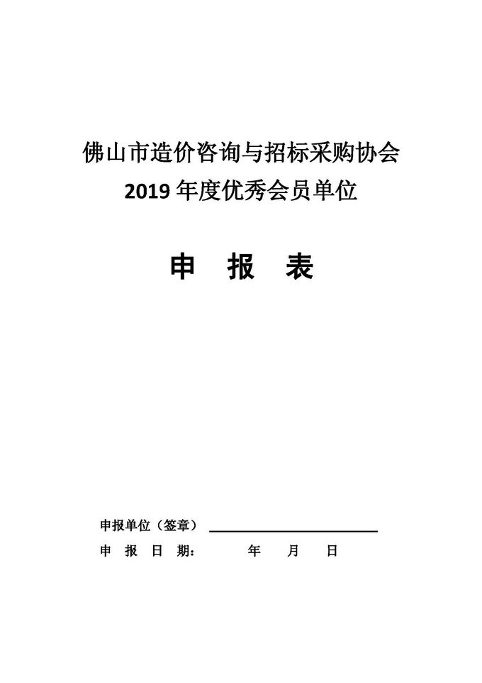 附件2、佛山市造價咨詢與招標采購協會2019年度優秀會員單位申 報 表