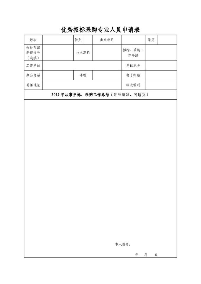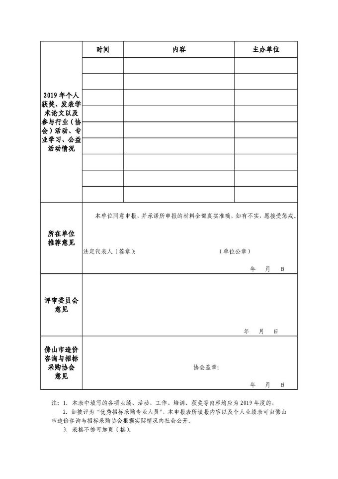 附件4、佛山市造價咨詢與招標采購協會2019年度優秀招標采購專業人員申 報 表