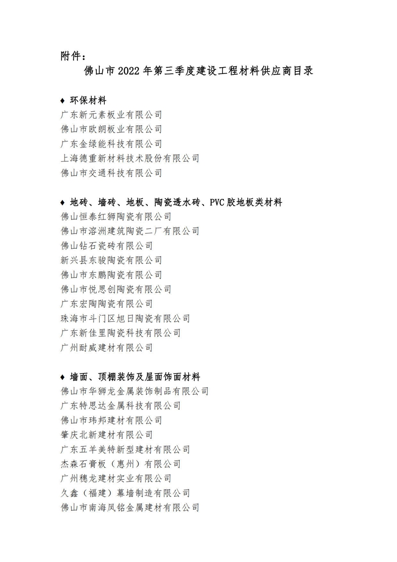 附件:佛山市2022年第三季度建設工程材料供應商目錄