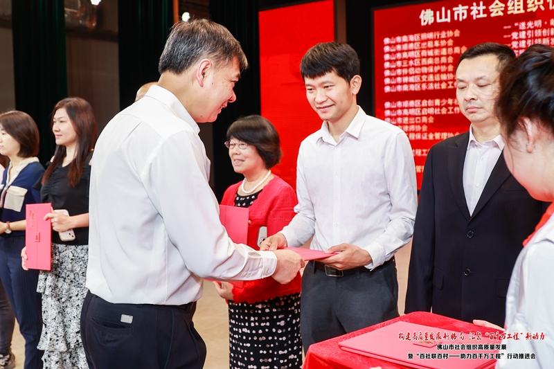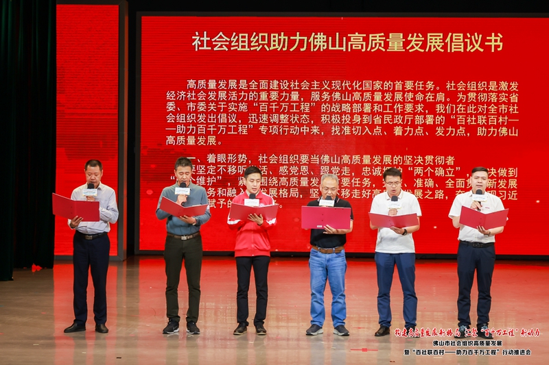 會上,舉行了首批社會組織“百社聯百村——助力百千萬工程”結對幫扶簽約儀式,現場19家社會組織與14個村居進行簽約結對,市、區社會組織代表宣讀了《社會組織助力佛山高質量發展倡議書》。
