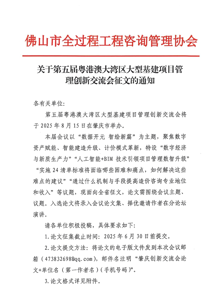 關于第五屆粵港澳大灣區大型基建項目管理創新交流會征文的通知