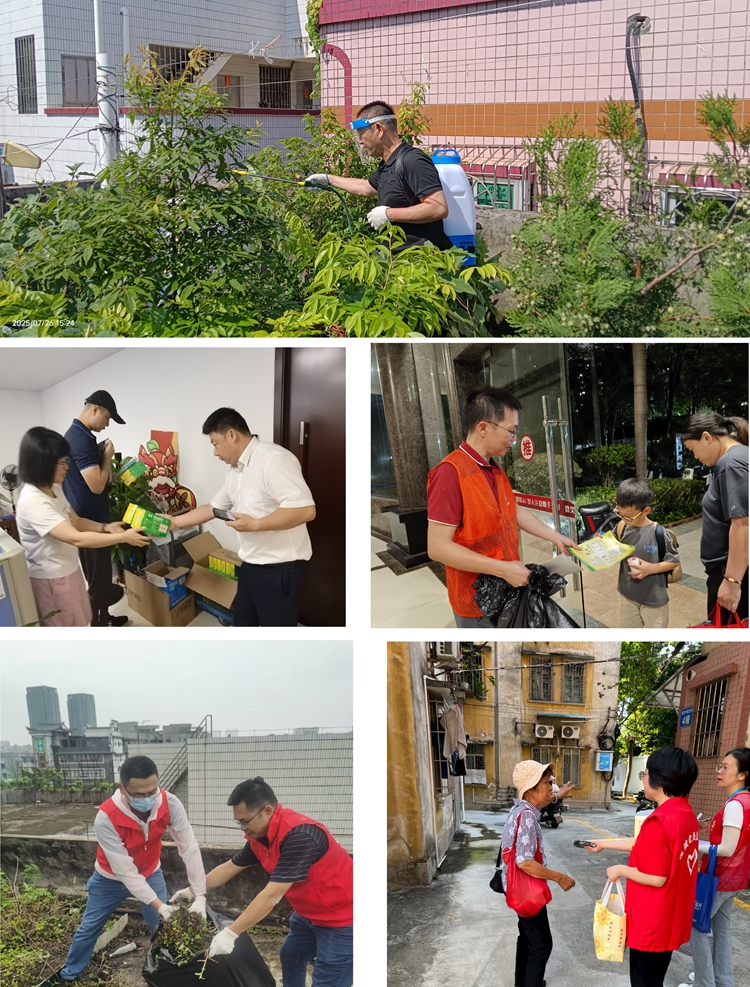 理事單位——廣東建瀚工程管理有限公司黨支部主動組織志愿力量前往潯峰社區(qū)開展草地專項治理,清除蚊蟲孳生地,筑牢健康防線。