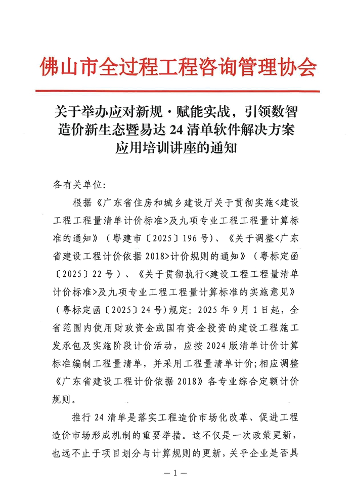 關于舉辦應對新規 · 賦能實戰,引領數智造價新生態暨易達24清單軟件解決方案應用培訓講座的通知