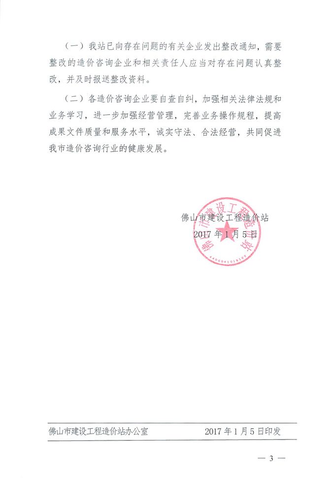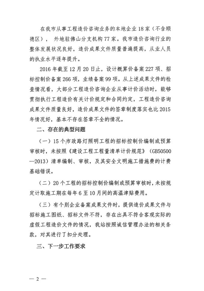 佛山市建設(shè)工程造價(jià)站關(guān)于2016年度佛山市工程造價(jià)咨詢成果文件質(zhì)量動態(tài)檢查情況的通報(bào)
