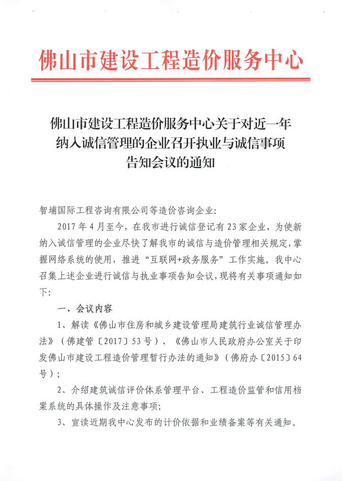關于對近一年納入誠信管理的企業召開執業與誠信事項告知會議的通知