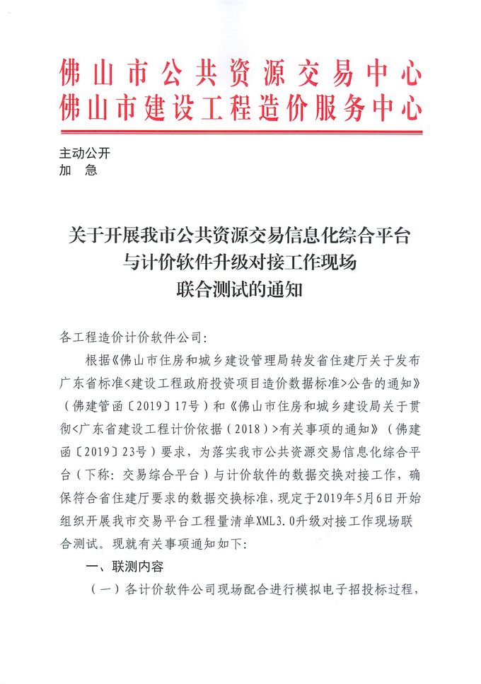 關于開展我市公共資源交易信息化綜合平臺與計價軟件升級對接工作現場聯合測試的通知