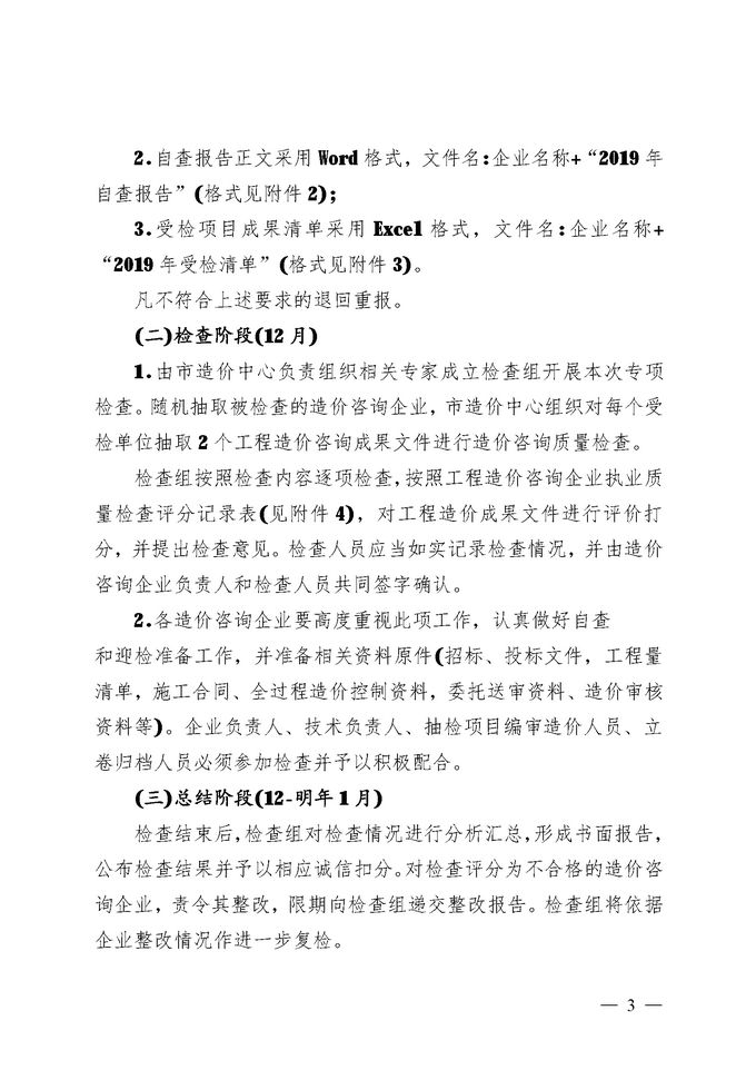 附件1:自查報(bào)告封面 附件2:工程造價(jià)咨詢企業(yè)咨詢質(zhì)量與計(jì)價(jià)行為專項(xiàng)檢查自查報(bào)告 附件3:佛山市2019年度工程造價(jià)咨詢企業(yè)咨詢質(zhì)量與計(jì)價(jià)行為專項(xiàng)檢查報(bào)送清單