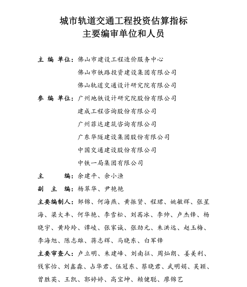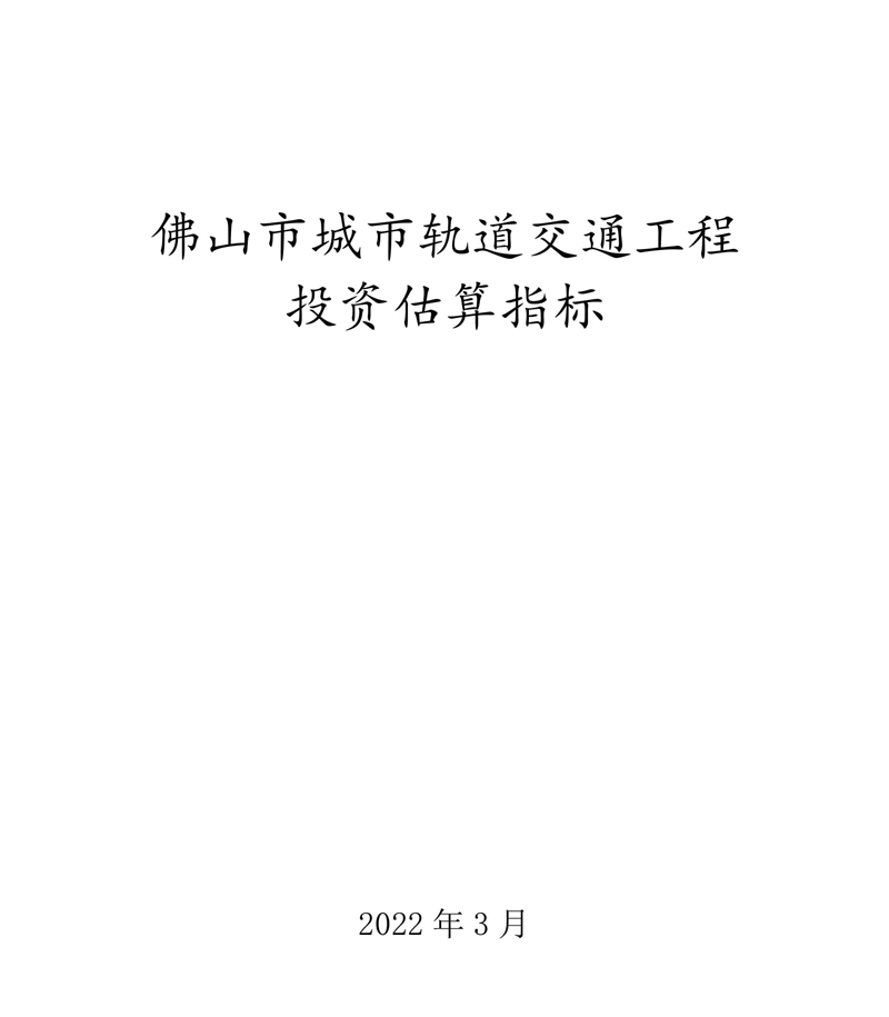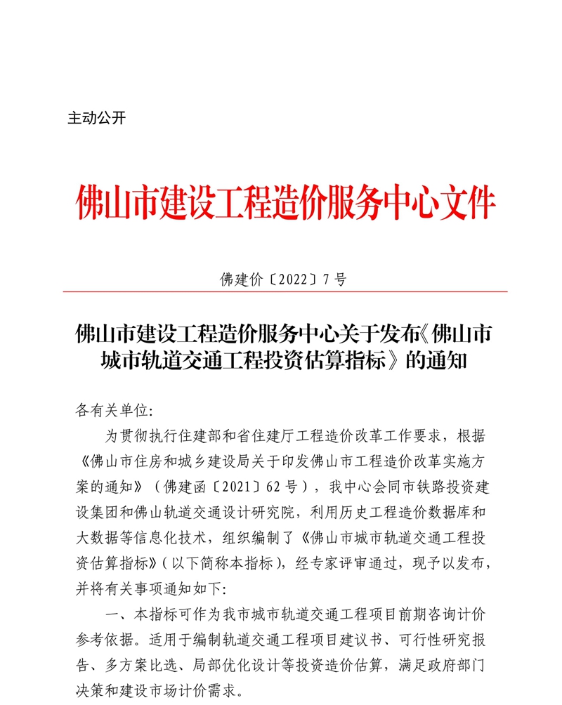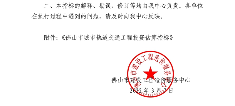 佛山市建設工程造價服務中心關于發布《佛山市城市軌道交通工程投資估算指標》的通知