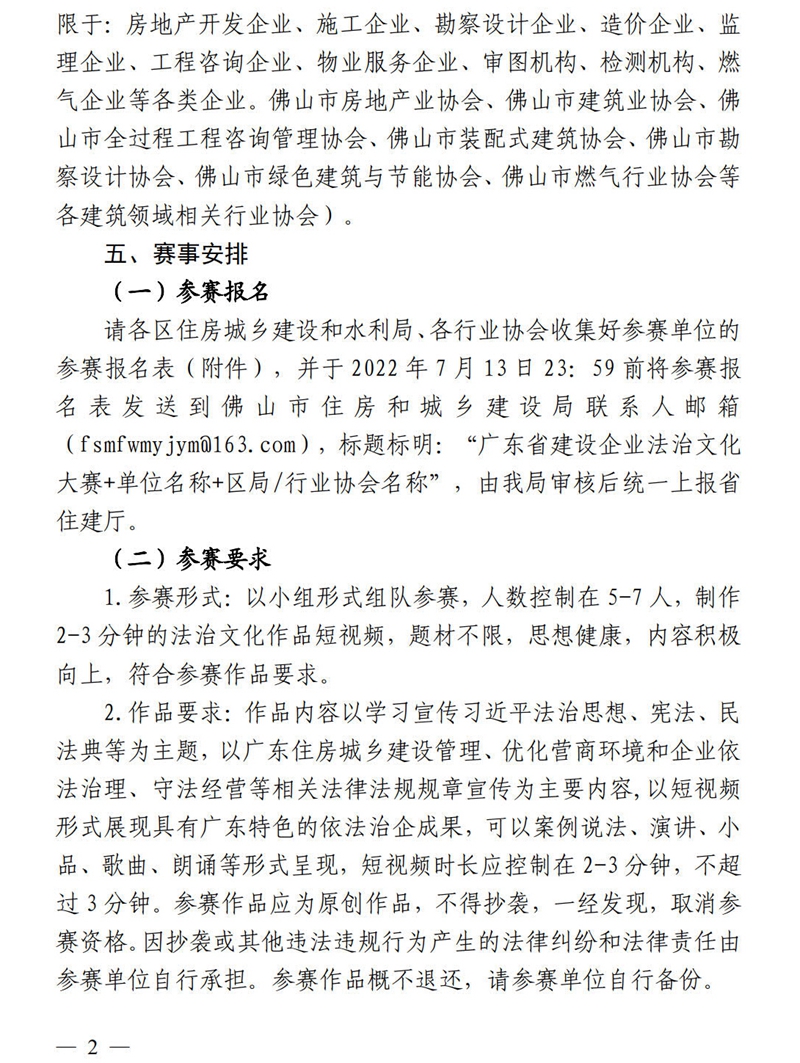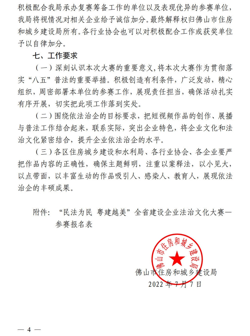 轉發 | 佛山市住房和城鄉建設局關于承辦“民法為民 粵建越美”全省建設企業法治文化大賽初復賽的通知