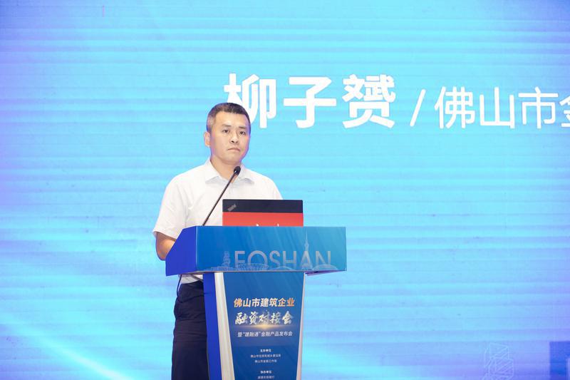 8月22日,佛山市建筑企業融資對接會暨“建融通”系列產品發布會在萬科金融中心舉行,佛山市金融工作局副局長柳子赟發言。/佛山日報記者符詩賀攝