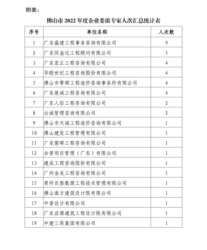 轉發 | 佛山市建設工程造價服務中心關于公布2022年度企業委派專家人次情況的通知