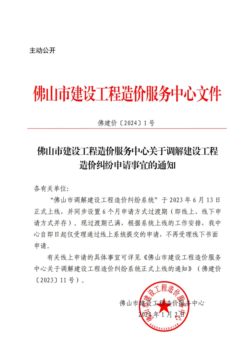 轉(zhuǎn)發(fā) | 佛山市建設(shè)工程造價服務(wù)中心關(guān)于調(diào)解建設(shè)工程造價糾紛申請事宜的通知