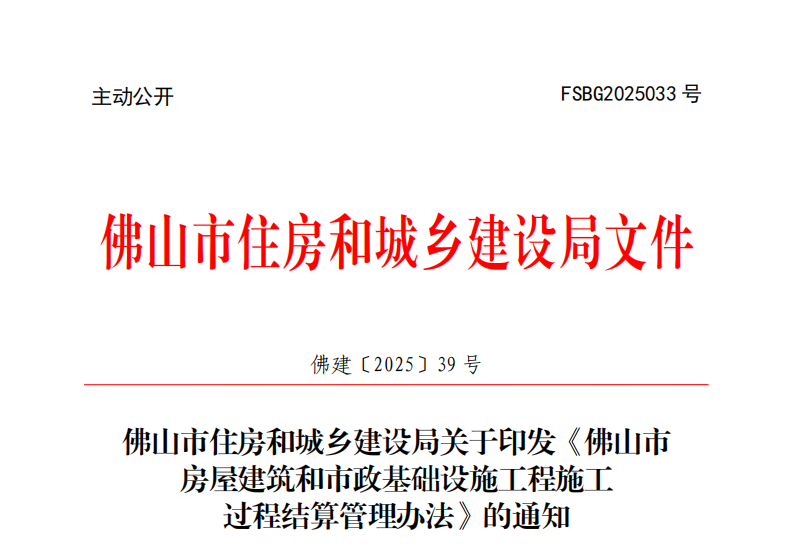 轉(zhuǎn)發(fā) | 佛山市住房和城鄉(xiāng)建設局關(guān)于印發(fā)《佛山市房屋建筑和市政基礎(chǔ)設施工程施工過程結(jié)算管理辦法》的通知