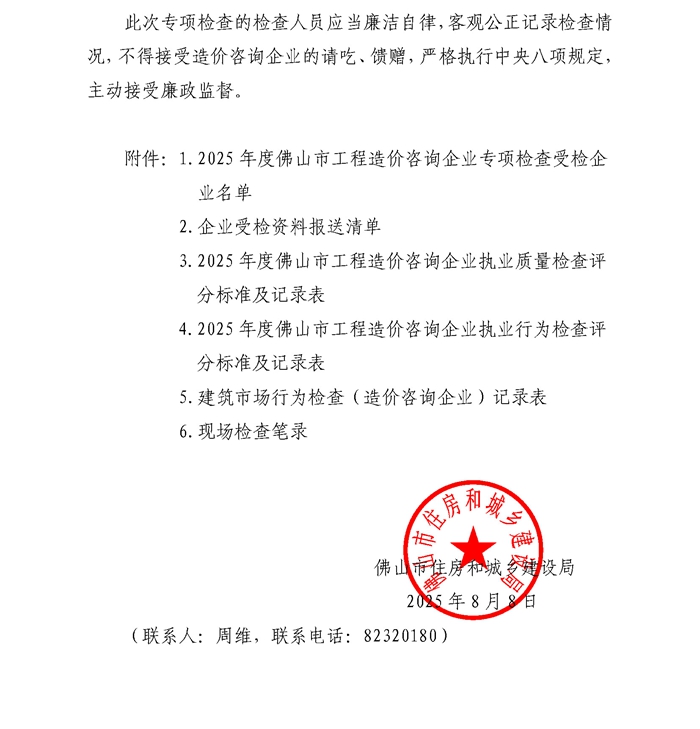 佛山市住房和城鄉(xiāng)建設(shè)局關(guān)于開(kāi)展2025年度工程造價(jià)咨詢(xún)企業(yè)專(zhuān)項(xiàng)檢查的通知