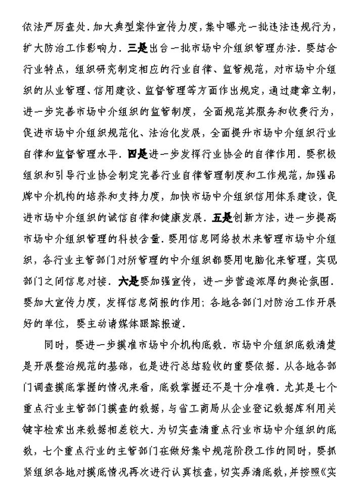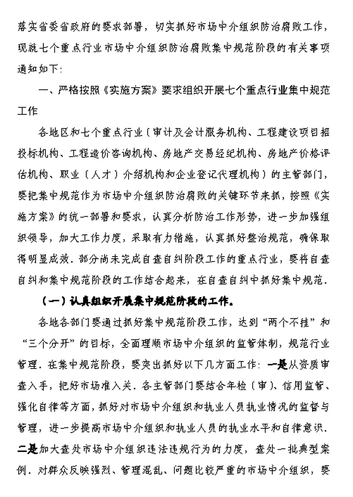 關于認真抓好重點行業的集中規范切實抓好市場中介組織防治腐敗工作的通知