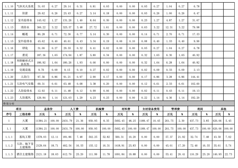 佛山市2016年第3季度技術經濟指標分析—某大廈?(商業、酒店、辦公)項目案例1