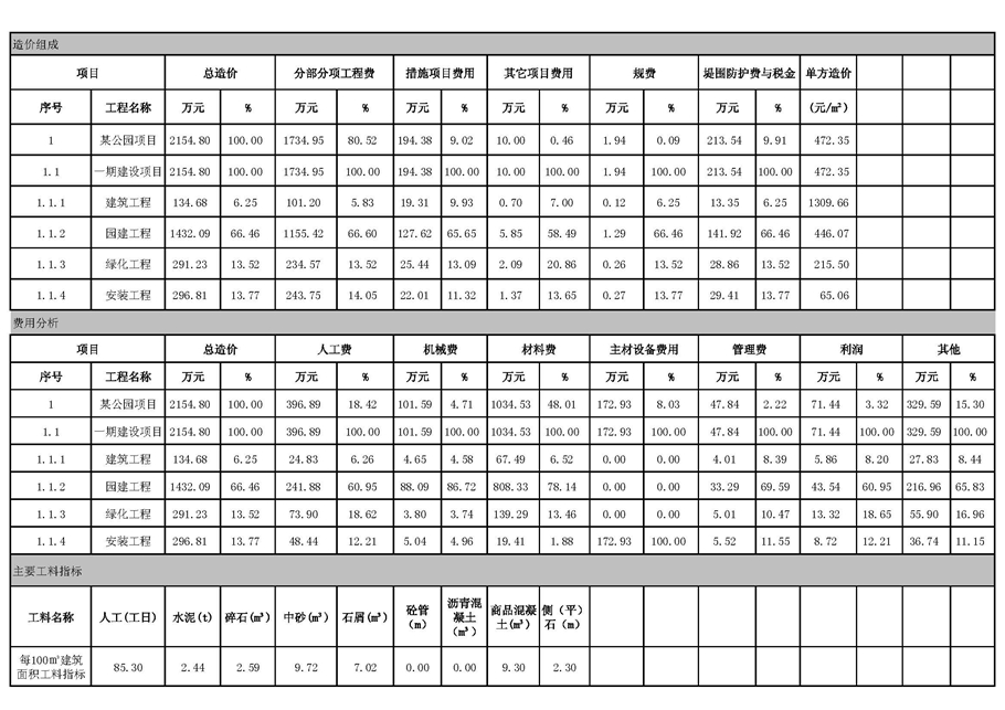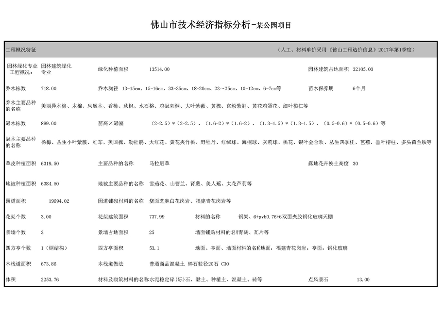 佛山市2017年第2季度技術(shù)經(jīng)濟(jì)指標(biāo)分析—某公園項(xiàng)目案例