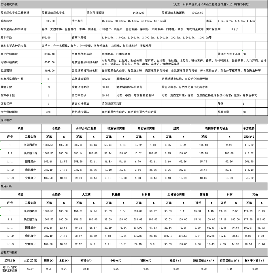 佛山市2017年第4季度技術經濟指標分析—某公園項目