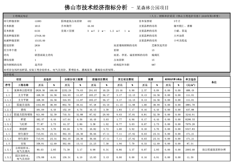 佛山市2018年第4季度技術經濟指標分析—某森林公園項目