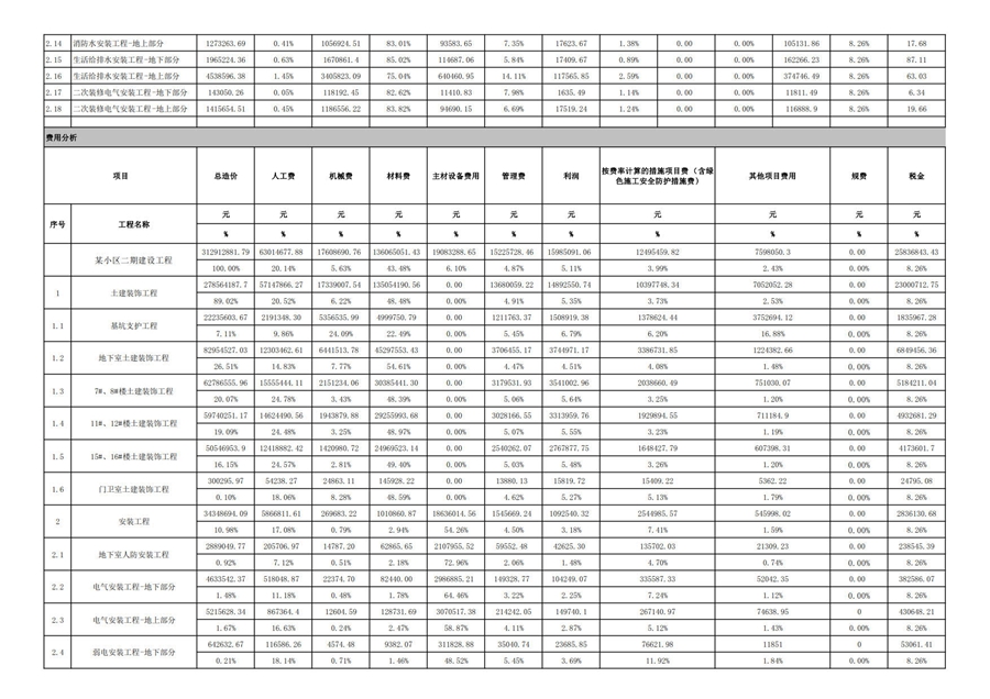 佛山市2021年第3季度技術經濟指標分析—某小區二期建設工程