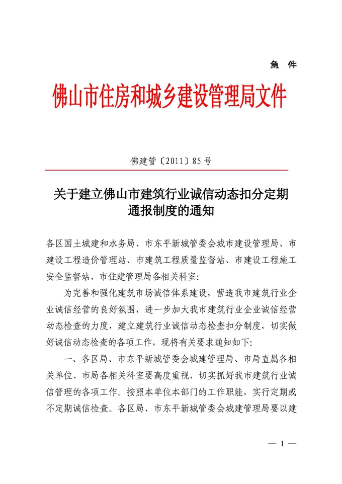 關于建立佛山市建筑行業誠信動態扣分定期通報制度的通知